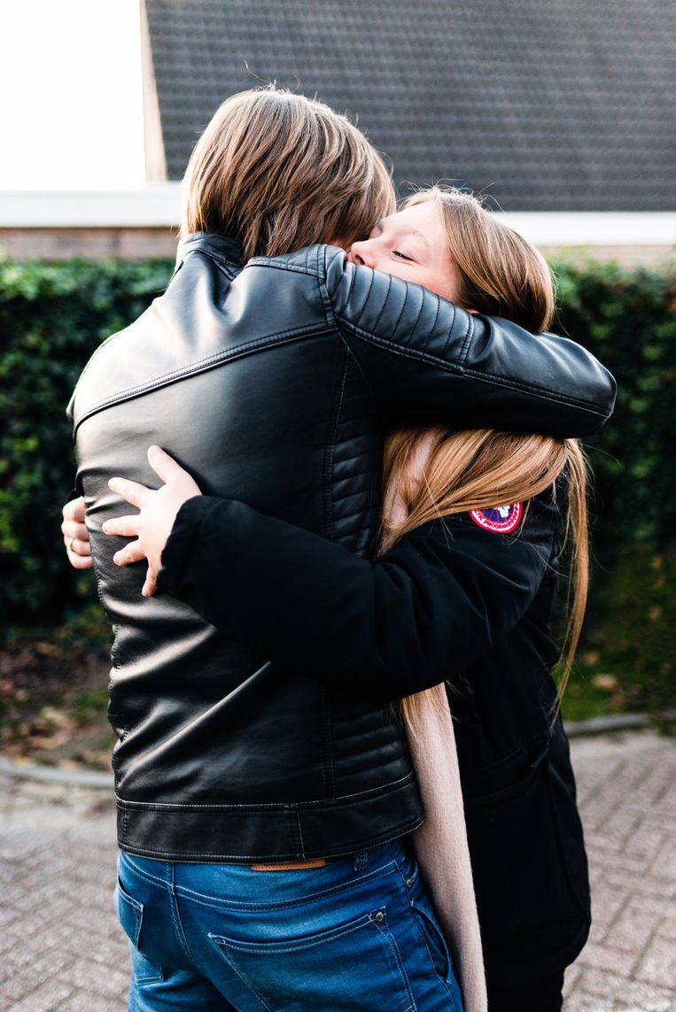 ‘Deze zomer zijn we met hen meegegaan op huwelijksreis’, zegt Noor, lachend. ‘Papa ging jou met kerst vragen, waar iedereen bij was. Toen werd hij helemaal emotioneel. Dat was bijzonder, want dat is hij niet zo snel.’ Als Katja in de keuken is: ‘Moet je haar straks maar eens vragen hoe dat was, met vijf kinderen in een camper, op je huwelijksreis.’